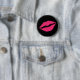 Fun and flirty sweetheart lips on a black background accent this cute button..