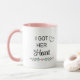 This personalised mug is a sweet and romantic way to express your love. The simple design features the phrase "I Got Her Heart" with a cute heart design. You can customise the text to create a truly special gift.