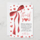 Send a heartfelt thanks with this watercolor red bow thank you card. Matching the sweetheart birthday theme, it features lovely red hearts and elegant typography. Perfect for expressing gratitude to guests after your little girl's first birthday celebration.