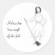 Fun black and white drawing of a woman with broom, for being swept off her feet, printed on custom Bridal Shower Stickers. Easily customise the text on the template form.