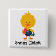 A cute and funny swim chick with a coral towel thrown over her shoulder wears a navy blue swimsuit with white anchor on it while holding a pair of swimming goggles. This makes a cute gift for any girl or female who is a swimmer, swim coach or part of a swim team. Artwork © Chrissy H. Studios, LLC. All Rights Reserved.