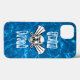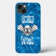 Swim Freak phone case set on deep blue pool water, with skull and cross bones, fins, goggle all done in white outlined in black.