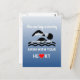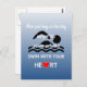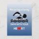 The inspirational text on this postcard is in white with a red heart, and there is a deep blue background with the pictogram of a swimmer. "When your lungs are bursting and your legs can swim no further SWIM WITH YOUR HEART."