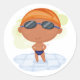 Swimmer Boy in Goggles and Swim Cap Classic Round Sticker