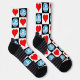 Fun high performance athletic crew socks for swimmers, swim teams, coaches and fans, with a seamless black and white chequered pattern of bright red hearts on the white squares, and on the black squares a cool swim icon filled in with cool blue pool water in the background. These are perfect for swimmers to wear to swim practice and swim meets, or any time during the swimming season. Great for swim coaches and fans as well!