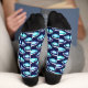 Swimmers will love these patterned socks featuring swimming goggles in shades of blue on a navy blue background.