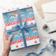 Fun swimmer holiday gift wrap featuring swimming-themed Santa design. To personalise edit text to add his or her name.