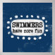 "Swimmers Have More Fun" is a cute text design with a white accent shape surrounded by white whimsical dots.
