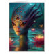 An alien swims in a pond at night with glowing flowers. Blank inside All Occasions