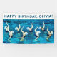 Creative, easy to personalise, birthday party, swimming event, or pool party banner featuring swimming pool and synchronised swimmers watercolor. To customise, edit text to add name.