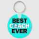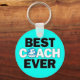 A fun customizable round keychain for the world's best swimming and diving coaches, with BEST COACH EVER printed in bold black and white text and a unique swimmer icon in place of the O! You can leave the background color as it is (light blue), or click the [Customize] button and use the color picker tool to change it to any color you want. These make a fun and affordable "thank you" gift for swim team coaches, and make a great team gift for swim coaches at the end of the season!