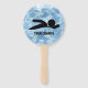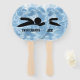 Swimming Design Hand Fans with customizable text on both sides of each piece.
