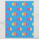 A pattern of fish swimming in blue water with texture applied to image.