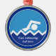 Swimming gifts, swimmer on a blue circle custom metal tree decoration