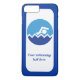 Swimming gifts, swimmer on a blue circle modern iPhone 7 plus design displaying a minimalist white icon of a swimmer on a two tone blue circle-sea and sky and a blue border.