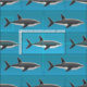 Original fine art pattern of a swimming Great White shark by artist and designer Carolyn McFann of Two Purring Cats Studio printed on quality and customisable fabric for all who love sharks and other dangerous animals.