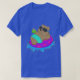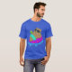 I give wanted to give this a 4 instead of a 5 because these Basic DARK T0shirts run unexpectedly SLIM or Narrow. Which is great if you do not have a potbelly, but I have a paunch. It isn't the shirt's fault that I've got a beer belly. The design and shirt itself is a quality cotton shirt. The color is more of a deep purple, but still a very pretty color. The Basic DARK T-shirts run a bit SLIMMER than the Basic Ts. The neck is a fraction narrower (or seems to be narrower) also. I'm a paunchy middle-aged woman and my neck is 12 inches (31cm) thick and the neckline fell about the same as in the photo of the man, and I had the desire to tug it a bit. So if you're a thick necked man or like loose shirts, be aware these are slimmer shirts. Once I get rid of my lockdown paunch it'll look great. The shirt washed well in cold water with no apparent bleeding. We don't have a dryer, so it hung dry. Did not shrink. Love the colors and the design. The design looks smaller on my shirt than it does on the model on-line. But still, it looks good on the shirt. The printing looks as it does on the model, just the size seems fractionally smaller. Washed garment in cold water, hung dry and design appeared unaffected.