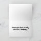 This card is great fun and good quality. I loved the humour inside and on the back. There is the opportunity to change the orientation of this card from landscape to portrait, which I did. It is relatively straightforward to amend the typeface to fit the new orientation. It was well packaged with no plastic. The printing on this card is excellent.