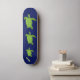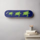 Swimming sea turtles and calligraphy on blue skateboard