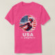 I give wanted to give this a 4 instead of a 5 because these Basic DARK T0shirts run unexpectedly SLIM or Narrow. Which is great if you do not have a potbelly, but I have a paunch. It isn't the shirt's fault that I've got a beer belly. The design and shirt itself is a quality cotton shirt. The color is more of a deep purple, but still a very pretty color. The Basic DARK T-shirts run a bit SLIMMER than the Basic Ts. The neck is a fraction narrower (or seems to be narrower) also. I'm a paunchy middle-aged woman and my neck is 12 inches (31cm) thick and the neckline fell about the same as in the photo of the man, and I had the desire to tug it a bit. So if you're a thick necked man or like loose shirts, be aware these are slimmer shirts. Once I get rid of my lockdown paunch it'll look great. The shirt washed well in cold water with no apparent bleeding. We don't have a dryer, so it hung dry. Did not shrink. Love the colors and the design. The design looks smaller on my shirt than it does on the model on-line. But still, it looks good on the shirt. The printing looks as it does on the model, just the size seems fractionally smaller. Washed garment in cold water, hung dry and design appeared unaffected.