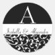 Swirl Damask Monogram Names Wedding Favour Labels. Available in two sizes. Sticker design by Elke Clarke © 2010 Add your names, monogram and choose the back ground colour.. Great for wedding favours, cake boxes, invitation envelopes and more.