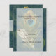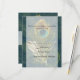 Part of a complete wedding collection. Features close-up artwork of a peacock feather in colours of cobalt blue, teal and celadon green. Background in dark blue with a vintage wash and swirl design. © 2010 www.CustomInvitesOnline.com