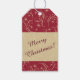 Pretty gold stars and swirls cover the bright red background on the front and back of this festive gift tag. A semi transparent gold banner holds your custom text in dark red on both sides. Make it say whatever you'd like!