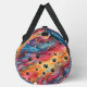 This colourful pattern duffle bag features a mesmerising swirling cosmic design in vibrant hues, liberally accented with classic black paw prints and twinkling stars. It's a unique and stylish pet accessory, perfect as a travel storage carrier for any pet lover.