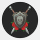 Swirling Sugar Skull Shield and Swords with Roses Classic Round Sticker