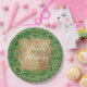 Happy Holidays in chic white lettering on a splash of faux gold foil on background of gold swirls and faux green glitter, these paper plates are also personalised with your name. Great for your home or gift as gifts. MATCHING napkins and MORE designs in our store.