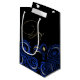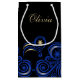 Gift Bag | Swirls and Snowflakes Bottom border in Blue and Gold on a black background is a striking holiday ensemble. Joy written in calligraphy script - on the back is a place to customise the name, other text or delete if you like - We chose a black background , you can choose another colour if you like - This is part of a mix and match Magical Unicorn Christmas Collection.