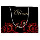 Gift Bag | Swirls and Snowflakes Red and Gold bottom border on a black background is a striking holiday ensemble. Large script calligraphy JOY on the front and a place for a name, text or just delete this option on the back - We chose a black background , you can choose another colour if you like - This is part of a mix and match Magical Unicorn Christmas Collection.