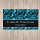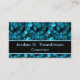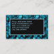 Make a statement with this beautiful, trendy business card template in a teal blue shiny swirls that look almost like muted gems or sequins, set against dramatic black. On the front, your name and title appear in dark aqua against black, bordered in a matching dark aqua. The same pattern appears as a border on the back, providing a backdrop for your contact details such as phone, email, and website. This template is easy to customize with your personal details, including changing the order of, deleting, and adding lines.