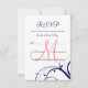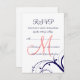 Swirls Navy Blue Coral Pink Wedding RSVP Card