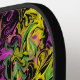 Swirls of Pink Green Yellow on Black Abstract Art Pickleball Paddle