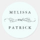 Swirly And Script Wedding Mint Classic Round Sticker