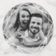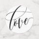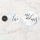 Black and white table confetti for an elegant wedding. Three of the sides features words written in a gorgeous, swirly calligraphy script -- love, cheers, mr & mrs -- one is personalised with your monogram, one with your names and wedding date, and one with a photo of the happy couple.