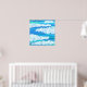 Digitally painted textured blue sky with swirly white clouds floating along. Image available on various gifts and products.