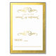 An elegant and classy place card featuring faux gold foil swirly flourishes on a white background with a classic gold foil border frame. Comes in 5 colours. Matching invitations, table number cards, RSVPs, cocktail napkins & more available. For questions or requests for other items featuring this design, please contact: cheryl@cheryldanielsart.com. "Swirly Flourish with Frame" by Cheryl Daniels © 2015.