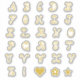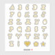 Fun swirly gold colour font typography monogram text capital letters alphabet sticker pack for monogramming, personalising, customising, note writing, journals, notebooks, and more. This set also includes an exclamation point, heart, flower, and star.