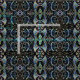 A black mirrored pattern of drawings layered over a colourful floral kaleidoscope forms an interesting nature design on this fabric.