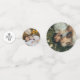 Romantic table confetti for wedding or engagement parties personalised with photos of the happy couple, your initials, and wedding date. One side of the small confetti pieces feature the word love in a swirly script.