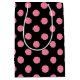 Swirly pink polka dots on black background medium gift bag