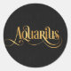 Swirly Script Zodiac Sign Aquarius Gold on Black Classic Round Sticker