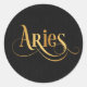 Swirly Script Zodiac Sign Aries Gold on Black Classic Round Sticker