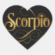 Swirly Script Zodiac Sign Scorpio Gold on Black Heart Sticker