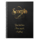 Swirly Script Zodiac Sign Scorpio Gold on Black Notebook
