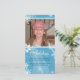 Snowflakes dancing around this photo card with wind blown swirls against a cyan blue background evoke the holiday season. A different way to frame your loved ones and send the best for the holidays. Your own photo and customised information are easily added. Available in alternate colours with matching products.
