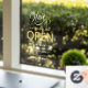 Swirly White Text Scissors Hair Salon Open Hours Window Cling