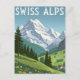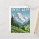 Capture the beauty of the European mountains with this vintage-style travel poster postcard. Featuring a stunning illustration of the majestic Swiss Alps, snow-capped peaks, lush green valleys, and a charming little chalet, this design evokes the golden age of travel. Perfect for sending a thoughtful message, adding to a travel-themed collection, or framing as a piece of rustic, wanderlust-inspired wall art. Ideal for lovers of skiing, hiking, nature, Europe, and retro tourism art.